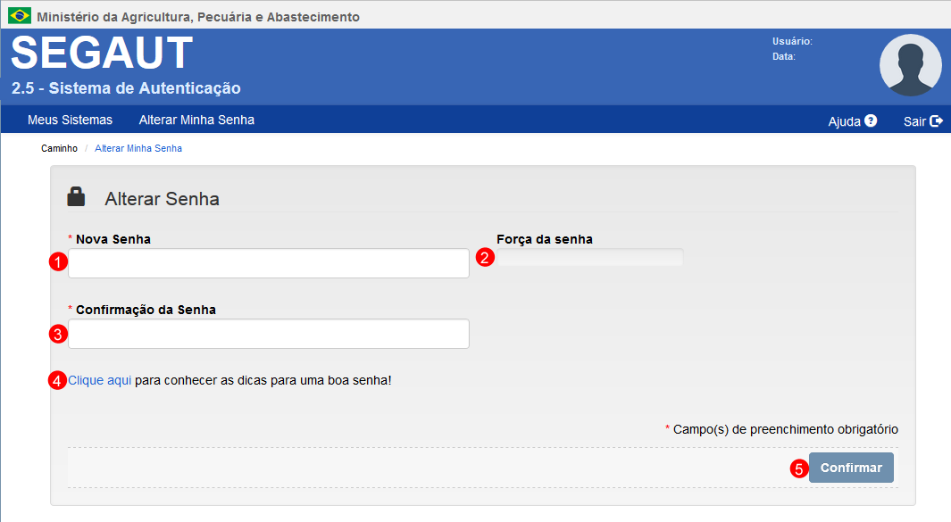 - Clique no botão Confirmar para efetivar a troca da senha.