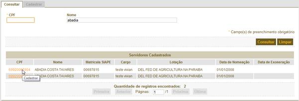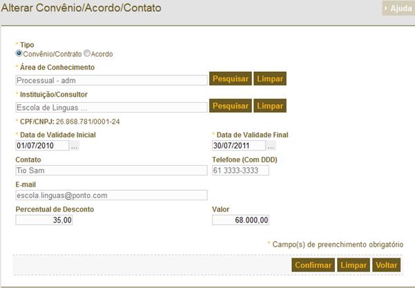 de Pessoas – Manter Cadastro de Instituições/Consultores