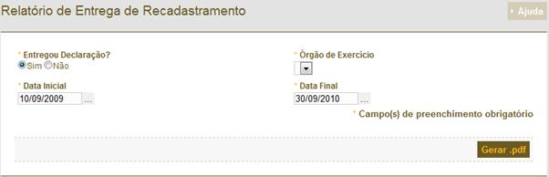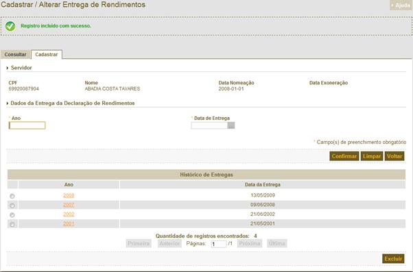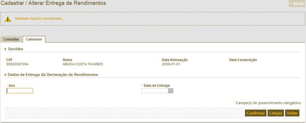 de Rendimentos – Manter Cadastro de Entrega de IRPF