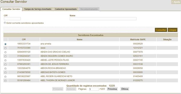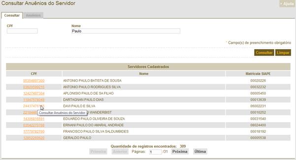 – Consultar Anuênios do Servidor