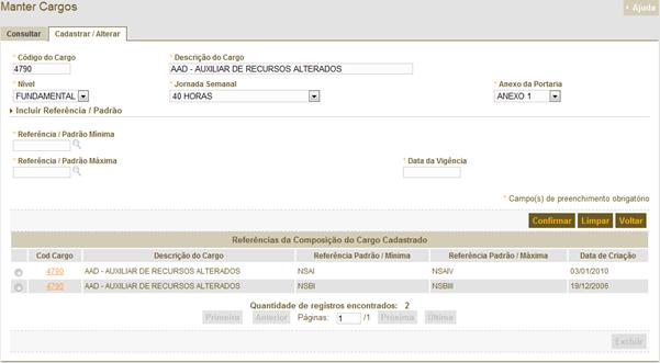 – Manter Cargos e Composição de Classe.