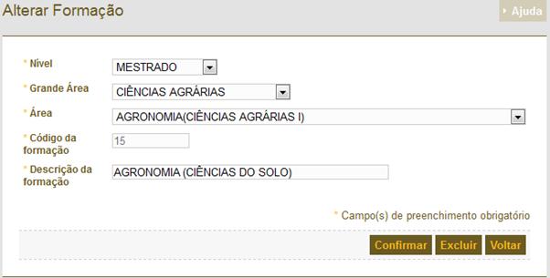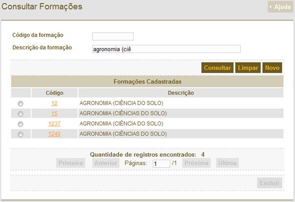 – Tabelas Básicas - Manter Formação