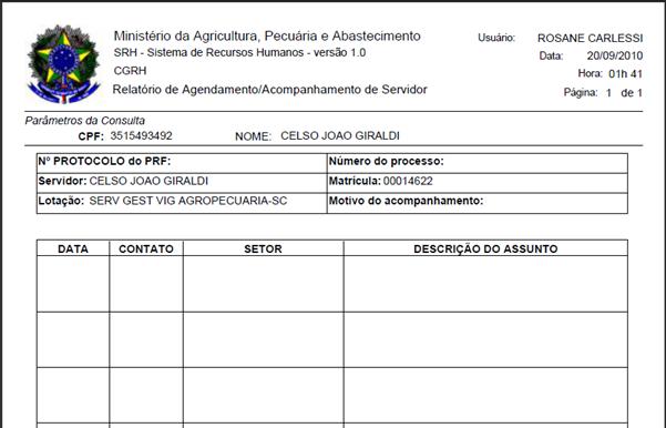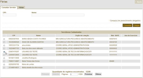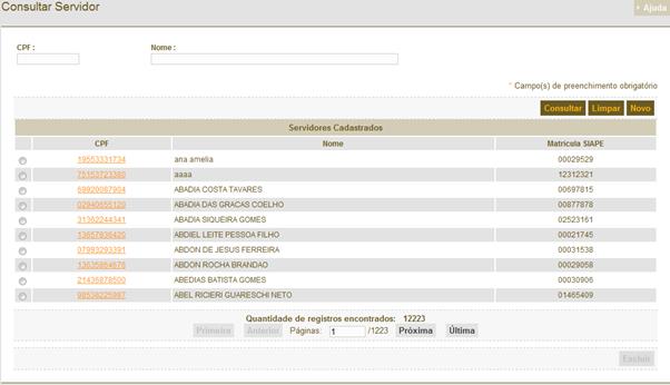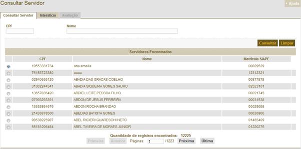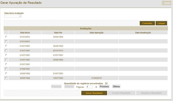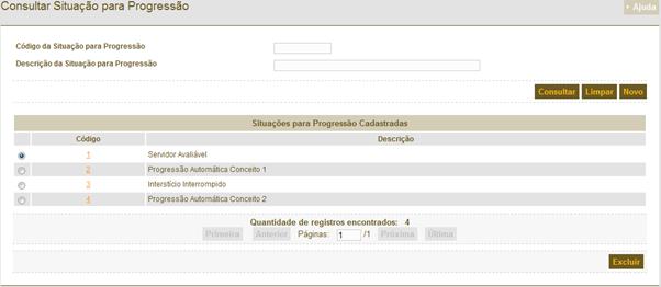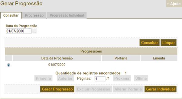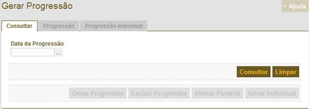 é a tela de consulta de para geração da Progressão Funcional. Para gerar uma