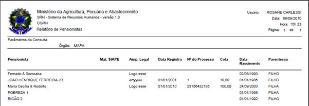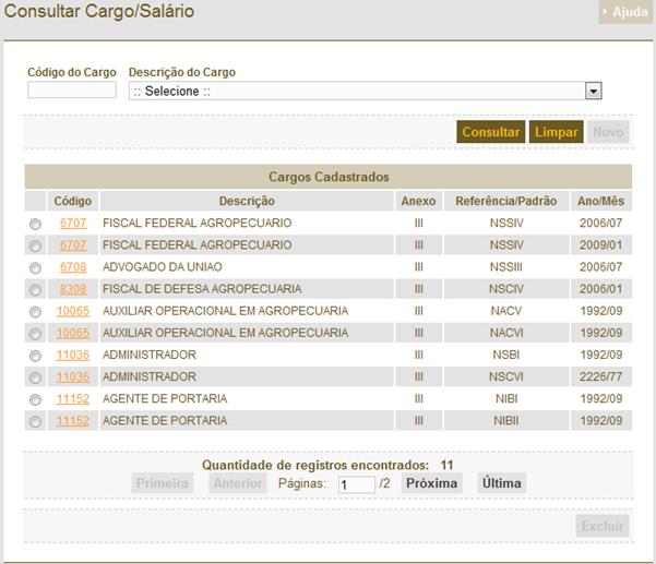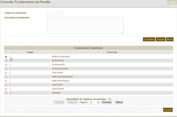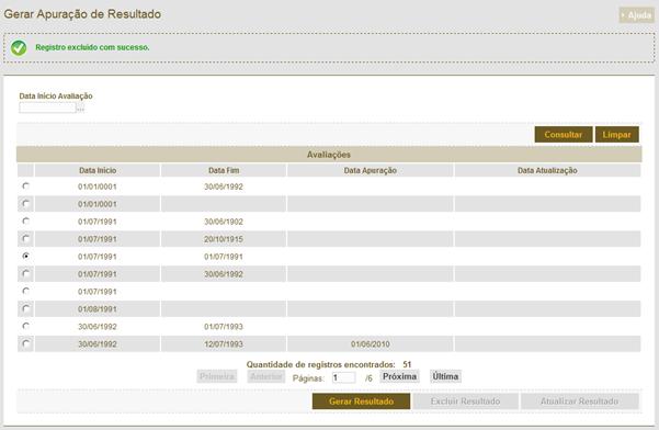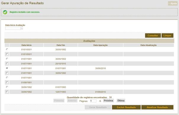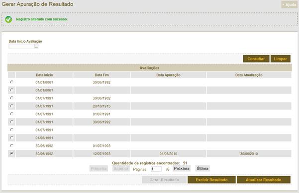 Figura 327: Tela de resultado da consulta para gerar a progressão