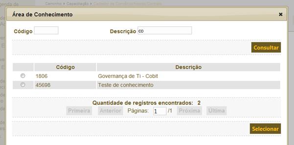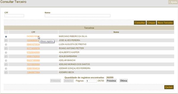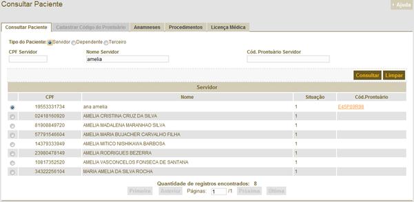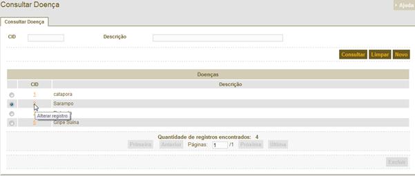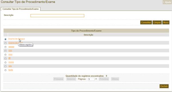 a realização da consulta o usuário selecionar um dos registros da lista