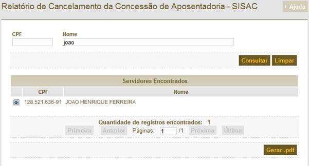 “.pdf”. A imagem a seguir exibe a tela com uma consulta realizada
