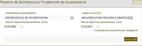 Figura 326: Tela de consulta para geração da progressão