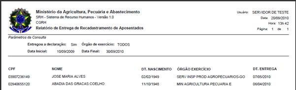 de Rendimentos – Relatório de Servidores que Entregaram Declaração de Bens
