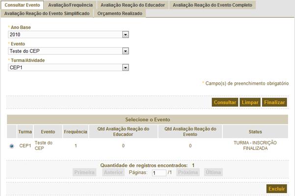 avaliados para o período determinado, retornando a tela 122. |