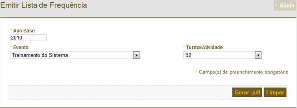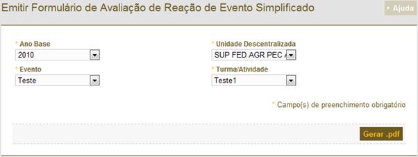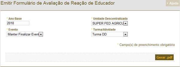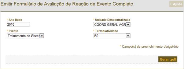 Figura 320: Tela para geração da avaliação