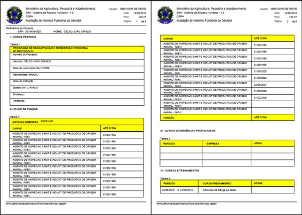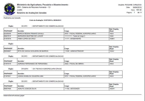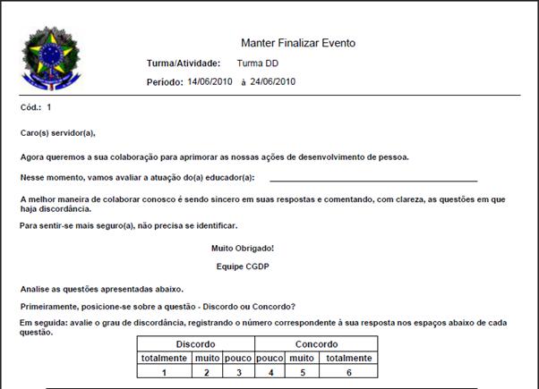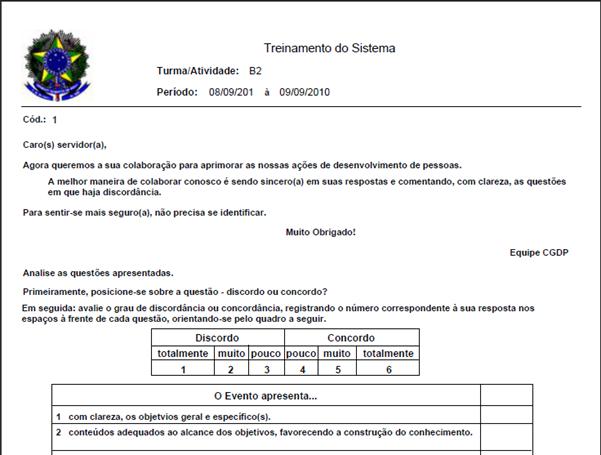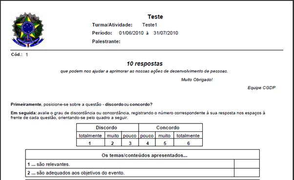 período determinado e, após gerar a avaliação, o sistema gera um documento em formato