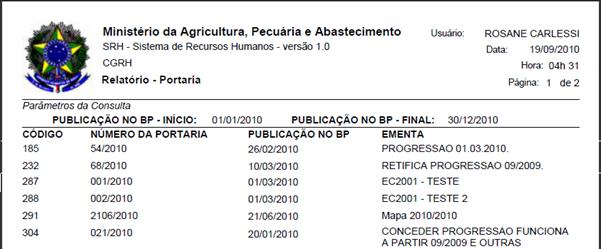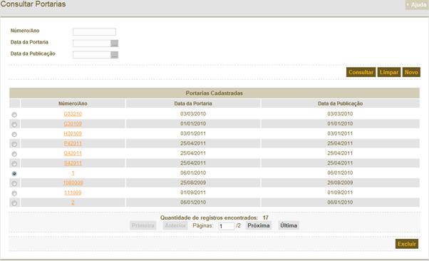 usuário seleciona uma Portaria da lista apresentada e clica sobre o botão