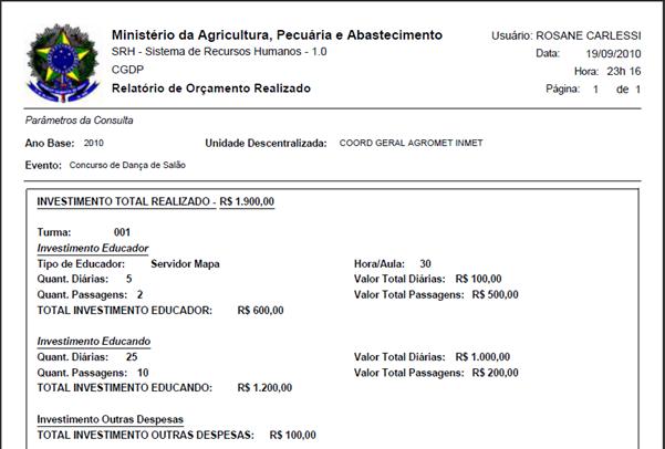 do relatório. |