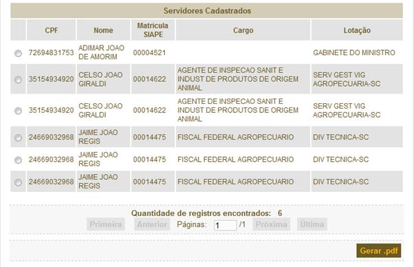sobre o botão “Gerar” para gerar a lista dos servidores que serão avaliados