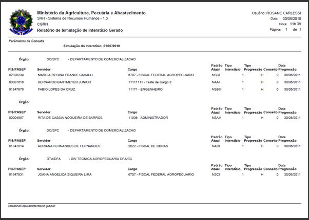 Figura 319: Tela para após a execução do botão “Simular” na geração do intertício - relatório.