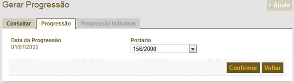 clicar sobre o botão “Gerar Progressão” a tela a seguir é apresentada. O